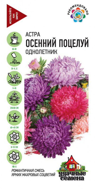 Растение пирамидальной формы, высотой 60-65 см. Цветоносы прочные. Соцветия махровые, диаметром 8-10 см, различной окраски. Язычковые цветки плотно прижаты друг к другу и загнуты в середину. Для выращивания подходят хорошо освещенные участки с плодородной суглинистой или супесчаной почвой. Астры обладают высокой холодостойкостью – хорошо переносят заморозки до -3-4 °C. Выращивают чаще всего рассадным способом. Используются для получения срезки и оформления участка.