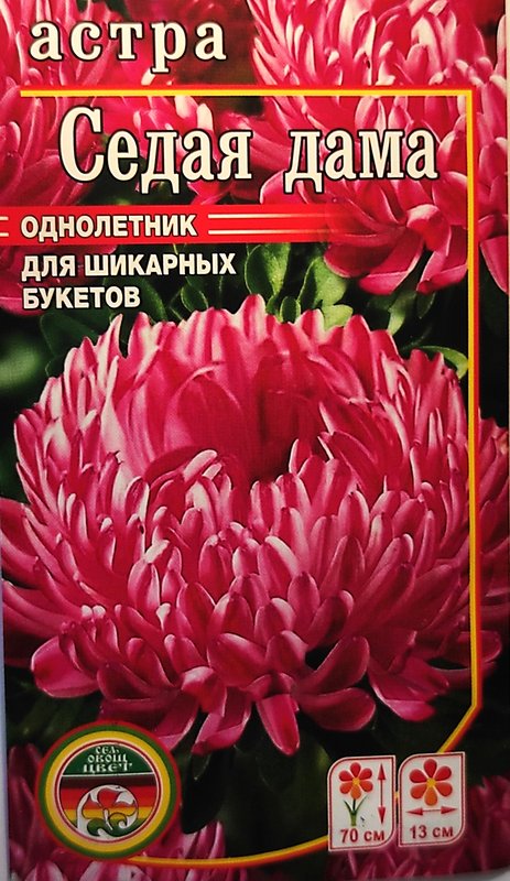 Один из самых популярных сортов. Сортотип Пионовидная. Сорт среднепоздний (зацветает через 115-120 дней от посева). Куст колонновидный, высотой 60-75 см. На растении формируется до 25-30 цветущих соцветий диаметром 10-11 см. Соцветия полусферические, густомахровые, оригинальной двойной окраски – язычковые цветки тёмно-розовые, с белой полосой вдоль краёв (к центру соцветия ширина белых полос увеличивается). Сорт устойчив к фузариозу. Используется для срезки и оформления. Растение светолюбивое, холодостойкое (переносит заморозки до -4 oС). Необходимо солнечное, защищённое от ветров место; почвы – дренированные, известкованные, удобренные, но без свежего навоза. Не любит кислых почв и застоя воды. Астру выращивают 60-65-дневной рассадой, которая к моменту высадки должна быть высотой 6-10 см и иметь 5-7 крупных листьев. Уход обычный – поливы, подкормки; рыхления – осторожные, т.к. корни поверхностные. На прежнее место можно высаживать не раньше, чем через 5 лет, иначе возможно заболева