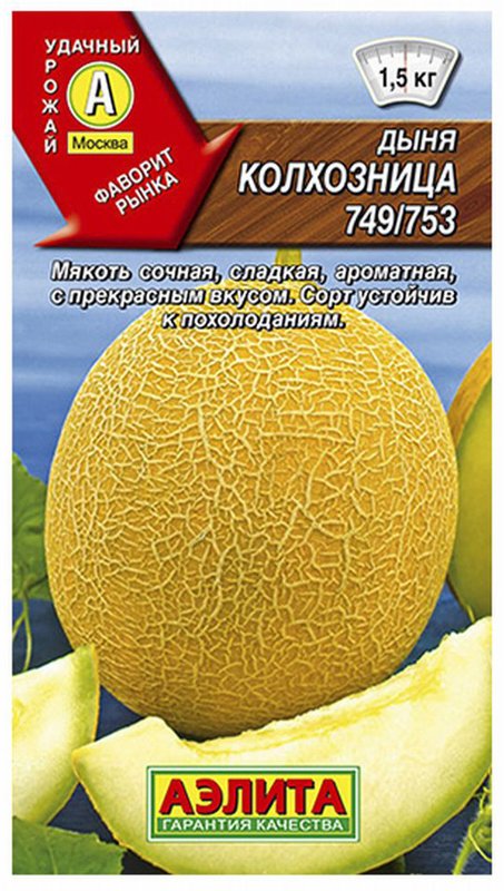 Сорт среднеспелый (77-95 дней от полных всходов до плодоношения). Растения длинноплетистые. Плоды шаровидные, массой 0,7-1,5 кг. Мякоть белая, плотная, сочная, сладкая, с прекрасным вкусом и ароматом. Сорт устойчив к бактериозу, хорошо переносит кратковременные похолодания. Плоды долго хранятся и отлично транспортируются. Урожайность 3-4 кг/м2.