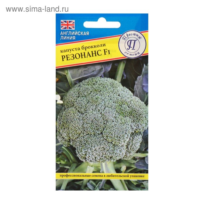 Резонанс F1 – среднеспелый гибрид капусты брокколи (70-75 дней от высадки рассады до уборки урожая). Рекомендуется для выращивания в открытом грунте. Растение средней силы роста, открытого типа, корневая система мощная. Листья среднего размера, серо-зеленые, с восковым налетом средней интенсивности, слабоволнистые. В начале образования головки листья вертикально ориентированы. Соцветия правильной формы, куполообразные, предотвращающие загнивания, зеленые, диаметром 15-20 см, массой 0,8-1,1 кг, плотные. Среднеустойчив к фузариозному увяданию. Гибрид используется для свежего потребления и заморозки. Образует малое количество боковых побегов. Высокая устойчивость к «прорастанию листьев» и образованию пустотелости стебля.
