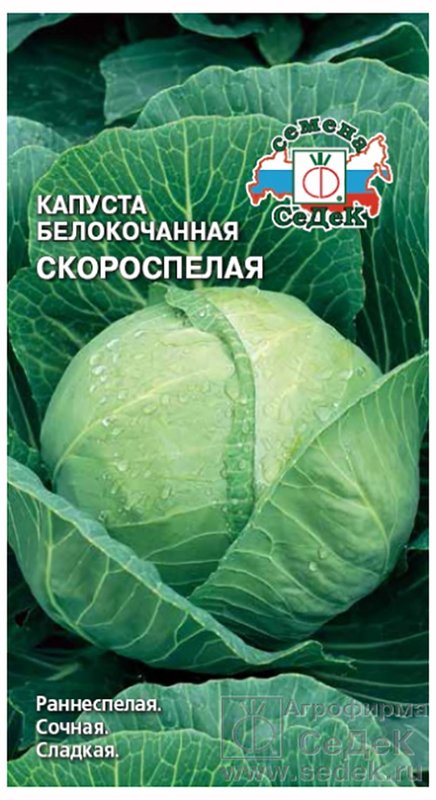 Раннеспелый (94-103 дня) сорт. Кочан округлый, диаметром 15-16 см, снаружи светло-зелёный, на разрезе белый с лёгкой желтизной, среднеплотный, массой 0,9-1,3 кг, сладкого, сочного вкуса. Урожайность 3,5-5,7 кг/м2. Ценность сорта: раннеспелость, выравненность кочанов, дружное формирование урожая. Рекомендуется для употребления в свежем виде и домашней кулинарии.