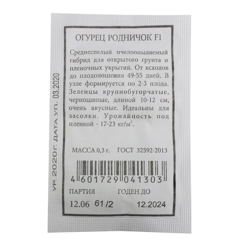 Знаменитый среднеспелый пчелоопыляемый гибрид для открытого грунта и пленочных укрытий. От всходов до начала плодоношения 49-55 дней. В узле формируется по 2-3 плода. Зеленцы цилиндрические, крупнобугорчатые, черношипые, массой 85-110 г, без горечи. Огурчики обладают великолепными вкусовыми качествами и идеальными засолочными свойствами. Высокоурожайный, под пленкой дает 25 кг/м2.