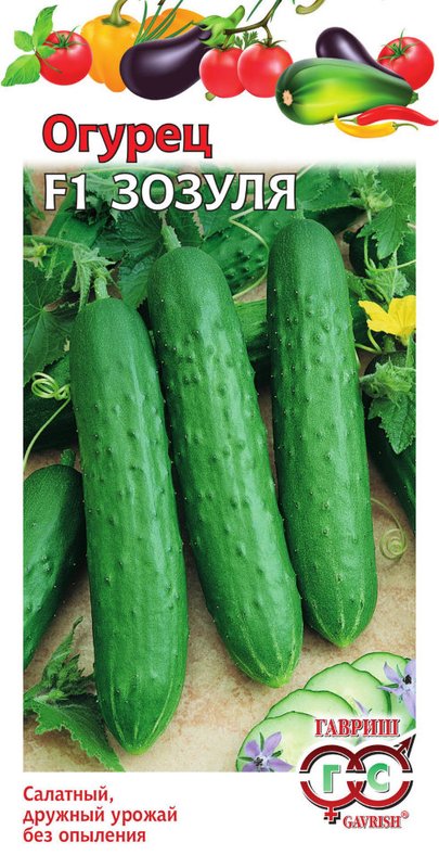 Скороспелый (вступает в плодоношение на 45-50 день от всходов) пчелоопыляемый гибрид с частичной партенокарпией, женского типа цветения. Предназначен для выращивания в пленочных теплицах. Растение среднеплетистое, ветвление слабое. Посев на рассаду в конце апреля. Высадка в грунт в конце мая - начале июня в фазе 3-4-х настоящих листьев. Посев непосредственно в теплицу - в середине мая. Схема посадки 50х50 см. Плоды цилиндрической формы, длиной 14-24 см, слабобугорчатые, белошипые, без горечи. Преимущественно салатного назначения, молодые зеленцы прекрасно подходят для засолки. Отличается дружным плодоношением. Гибрид устойчив к оливковой пятнистости и вирусу огуречной мозаики. Урожайность до 40 кг/м2.