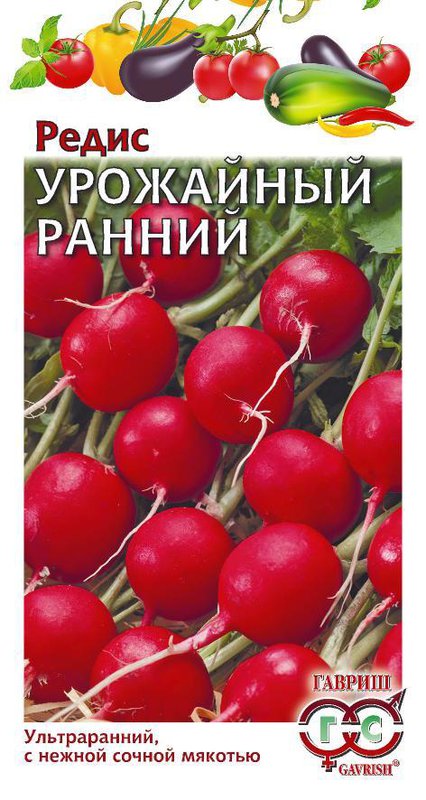 Ультраскороспелый (18-20 дней от всходов до технической спелости) сорт. Розетка листьев полупрямостоячая. Корнеплод ярко-красный, гладкий, округлый. Масса товарного корнеплода 15-20 г. Мякоть белая, сочная, нежная, приятного слабоострого вкуса, мякоть долго не теряет хрустящие свойства. Урожайность 1,8-2,0 кг/м². Ценность сорта: скороспелость, высокие товарные и вкусовые качества. Посев в грунт производится в конце апреля – начале мая на глубину 1 см по схеме 5-7x15 см. Предпочитает легкие, структурированные, хорошо удобренные почвы.