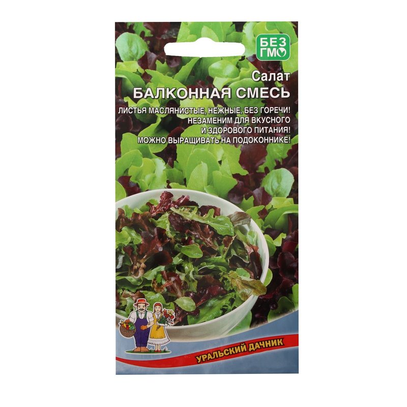 Смесь листовых сортов салата пригодных для круглогодичного выращивания в домашних условиях. Период от всходов до начала уборки зелени 25-30 дней. Растения формируют небольшие плотные розетки из фигурных листьев тёмно-красной и светло-зелёной окраски, маслянистой консистенции. Для непрерывного получения урожая свежей витаминной зелени посевы рекомендуется проводить с интервалом в 10-12 дней.