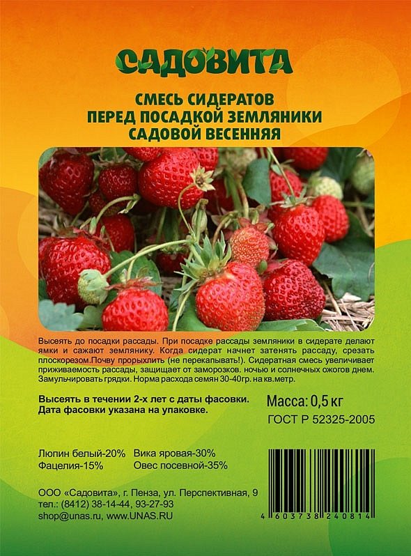 Смесь сидератов перед посадкой земляники садовой весной 0,5кг САДОВИТА (25)