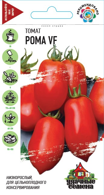 Популярный среднепоздний (от всходов до созревания 105-125 дней) низкорослый сорт для открытого грунта и временных пленочных укрытий. Растение мощное высотой 60 см, требует умеренного пасынкования. Плод овально-цилиндрический (сливка), слегка ребристый, красный, 60-80 г, с маленькими семенными камерами. Рекомендуется для цельноплодного консервирования, подходит для приготовления свежих салатов. Выращивают рассадным способом. Сорт устойчив к вертициллезу и вынослив к фузариозу. Ценится за отличный вкус, лежкость и товарность плодов. Урожайность 6-8 кг/м2.