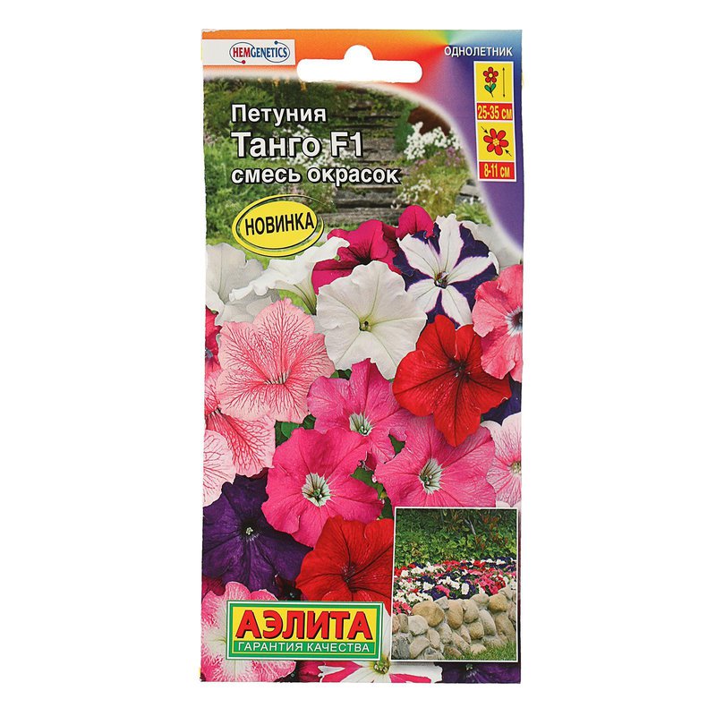 Вся палитра радужных красок в одной восхитительной смеси гибридов крупноцветковой петунии Танго голландской селекции! Она отличается специально подобранной контрастной гаммой оттенков, а также ранним и однородным цветением. Цветки очень яркие, крупные, диаметром 8-11 см. Куст хорошо разветвлен, но сохраняет компактную форму на протяжении сезона. Высота растений 25-35 см, ширина 25-30 см. Смесь петунии рекомендуется использовать в составе садовых клумб, а также в качестве монокультуры. Кроме того, гибриды украсят собой садовые вазоны, балконные контейнеры и подвесные кашпо.
